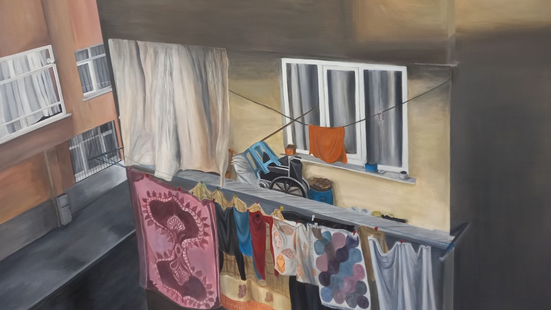“Mahallenin Hafızası”, 100x160 cm, tuval üzerine akrilik boya, 2024