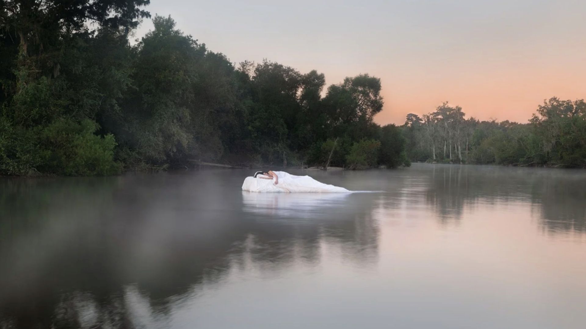 Gündelik yaşam sahnelerinde insanlar rutinlerine devam ederken, doğa edilgen bir arka plan olmaktan çıkıp izleyen, kaydeden ve tanıklık eden bir özneye dönüşüyor. Çiçeklerin içindeki gözler, polenlerin temas hâli ve sanatçının el boyaması kumaşlarının duyusal dokusu, doğayı hassas ama dikkatli bir varlık olarak görünür kılıyor. Seramikten üretilmiş büyük ölçekli dalga formları, kırılgan malzemeleri ve anıtsal kütleleriyle tehdit ve korunma arasında bir denge kurarken; yanlarına yerleştirilen küçük plastik insan figürleri, insanlığın hem fiziksel hem kavramsal kırılganlığına işaret ediyor.