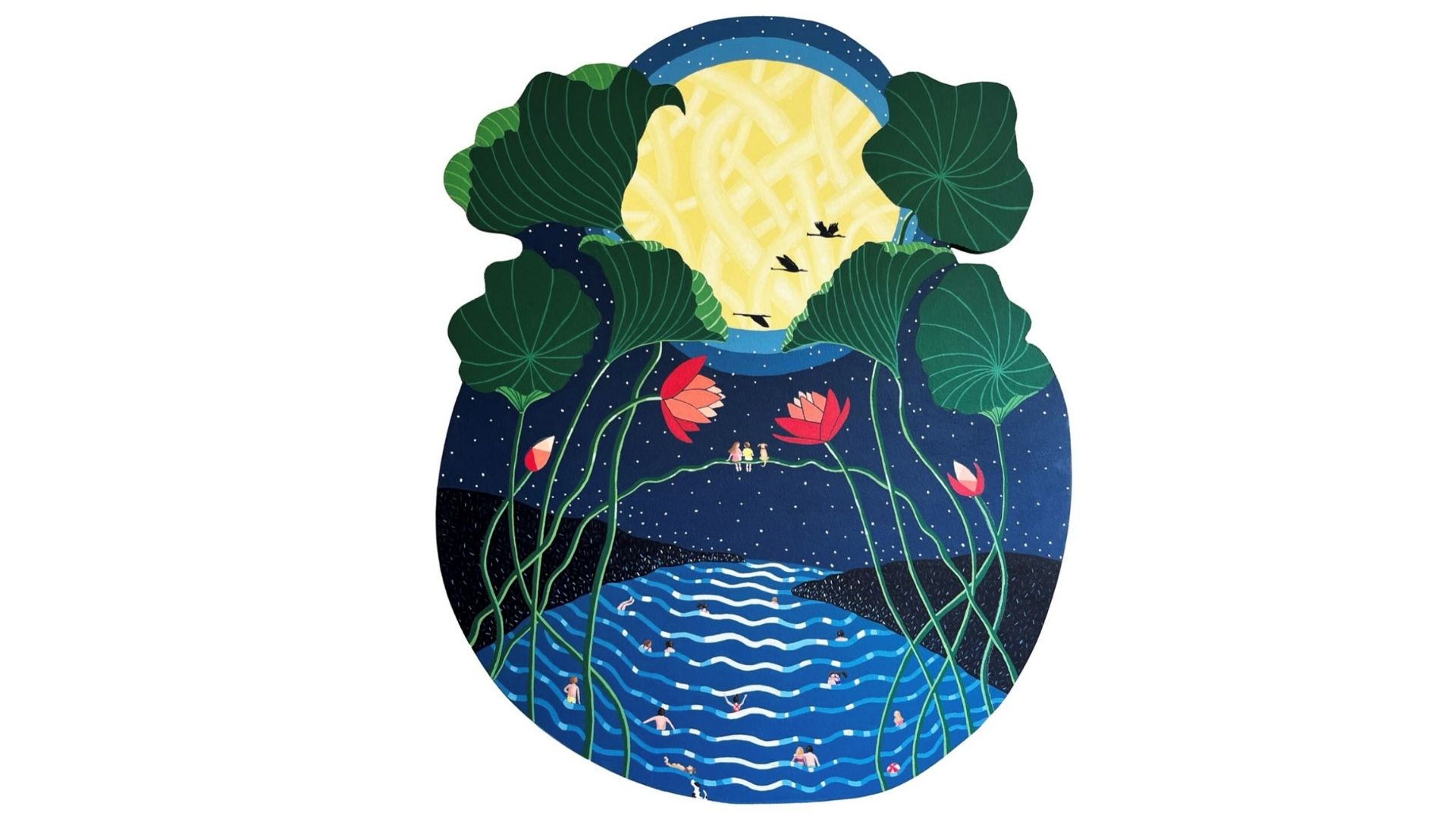 “İçerisi”, insan-merkezli bakışın yer değiştirdiği bir görsel evren kuruyor. Pekmen, şekilli tuvaller aracılığıyla modernist resmin sınırlarını bilinçli biçimde esnetirken, izleyiciyi doğanın belirlediği yeni bir düzenin içine davet ediyor. Sergide doğa olağanüstü ölçülerde karşımıza çıkıyor: dev dalgalar, abartılı çiçekler ve orantısız ağaçlar, insan figürünü küçük, geçici ve kırılgan bir konuma yerleştiriyor. Bu tersine ölçekleme karamsar bir anlatıdan çok, doğanın ağırlığını merkeze alan alternatif bir algı önerisi sunuyor.