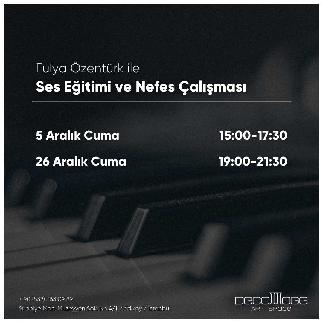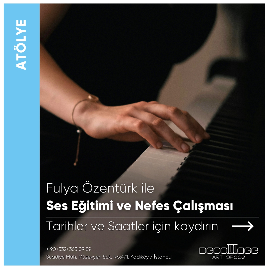 Decollage Art Space, sesini daha etkili kullanmak, sahne performansını güçlendirmek veya sadece ses ve nefes teknikleri konusunda uzmanlaşmak isteyen herkesi Fulya Özentürk ile Ses Eğitimi ve Nefes Çalışması atölyesine davet ediyor.
