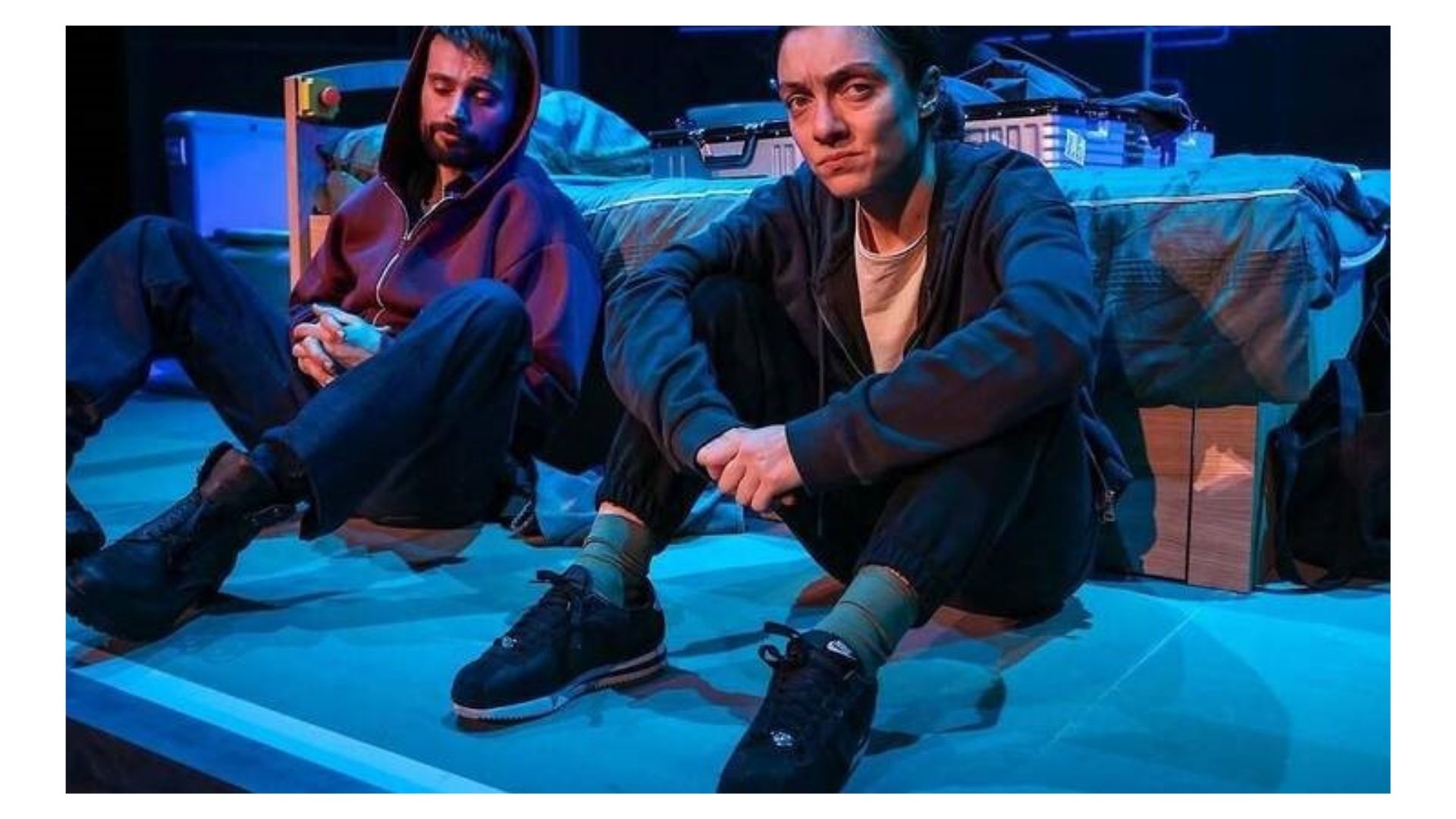 Emma’nın mücadelesi, salt zihinsel veya sözel bir çatışma olarak kurulmamıştır. Var olan çatışma, tüm bedeniyle sahneye yayılan fiziksel bir çözülme ve yeniden inşa sürecidir. Judith Butler’ın performativite kavramını hatırlatan bir biçimde, Emma’nın kimliği tekrarlanan eylemlerle (rol yapmak, madde kullanmak) inşa edilmiştir ve bu performans iflas etmiştir. Merve Dizdar, bu çöküşü ve direnci, olağanüstü bir bedensel farkındalıkla sahneye taşır.