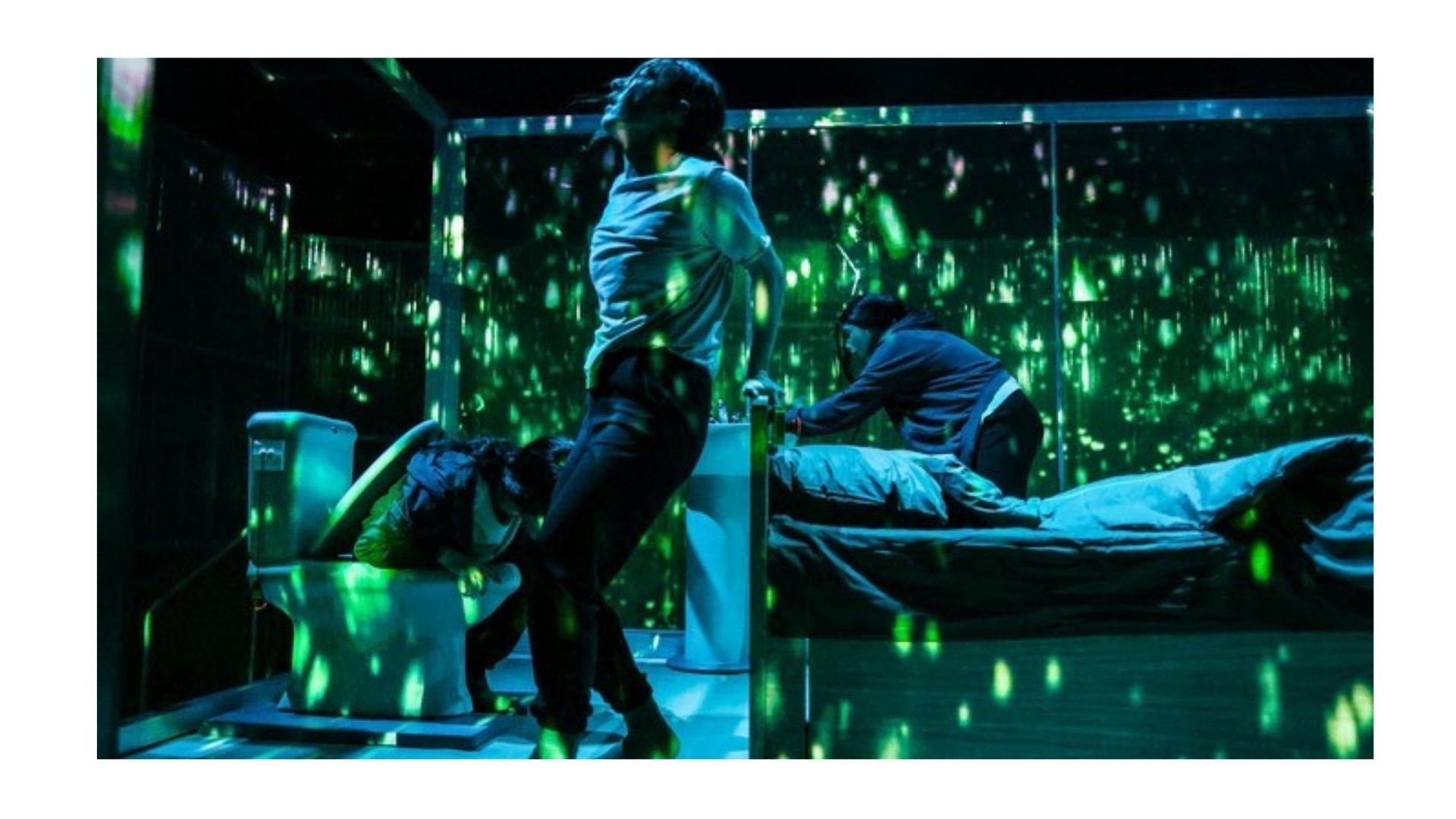 Oyunun adı, rehabilitasyon süreci sahnesinde duyduğumuz klasik bir öğüdü akla getirir: “Seni maddeye iten insanlardan, mekânlardan ve nesnelerden uzak dur.” Macmillan, bu üçlüyü, karakterin hem dışını kuşatan hem de iç dünyasını şekillendiren bir hapishane olarak yeniden yorumlar. İbrahim Çiçek’in yorumunda, bu kuşatılmışlık hissi, Ceyda Balaban’ın minimalist ve steril bir sahne tasarımı ile izleyiciye doğrudan aktarılır. Rehabilitasyon merkezi, modern toplumun disipliner kurumlarının tipik bir örneği olarak işlev görür; kuralların, rutinlerin ve itiraf ritüellerinin kesin bir şekilde uygulandığı bir laboratuvardır. Emma’nın yalanları ve savunma mekanizmaları, bu mekânın beyaz duvarlarına çarparak geri döner.