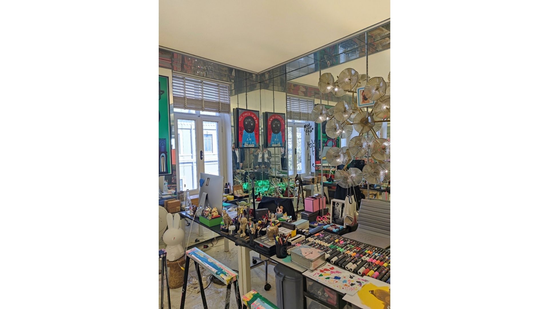 Sanatçı, eve girenleri ilk olarak “Burada benim kurallarım geçer" yazan eseriyle karşılar ve uyarır, evreninde “gerçekliğin sınırlarının farklı şekilde çalışacağını” belirtir. Buz patenlerinin detayıyla ziyaretçilerden bakış açılarını genişletmelerini ve onun kurallarını kabul ederek yukarıya çıkmalarını ister. Atölyesi ve terzihanesi gibi mahrem çalışma alanlarında “rahatsız etmeyiniz” yazıları bulunur, bu da yaratım sürecine verilen önemi gösterir. Hareket eden objeleri sever ve objelerin statik durmasından hoşlanmaz, bu yüzden hâlâ atölyesindeki objeler hareket halinde tutulur.