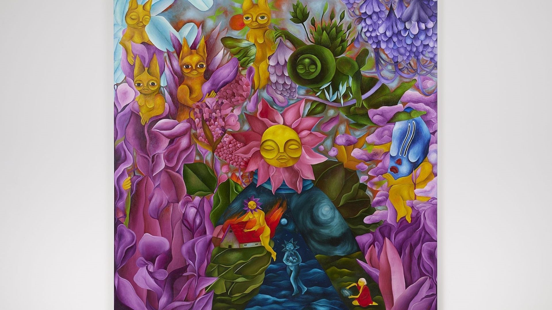 Solakoğlu’nun karakterleri her zaman bildiğimiz dillerle konuşmuyor. Renkler, semboller ve sanatçının kendi ürettiği enstrümanlardan çıkan, dışarıdan çözülemeyen sesler; iletişimi sezgisel bir düzleme taşıyor.