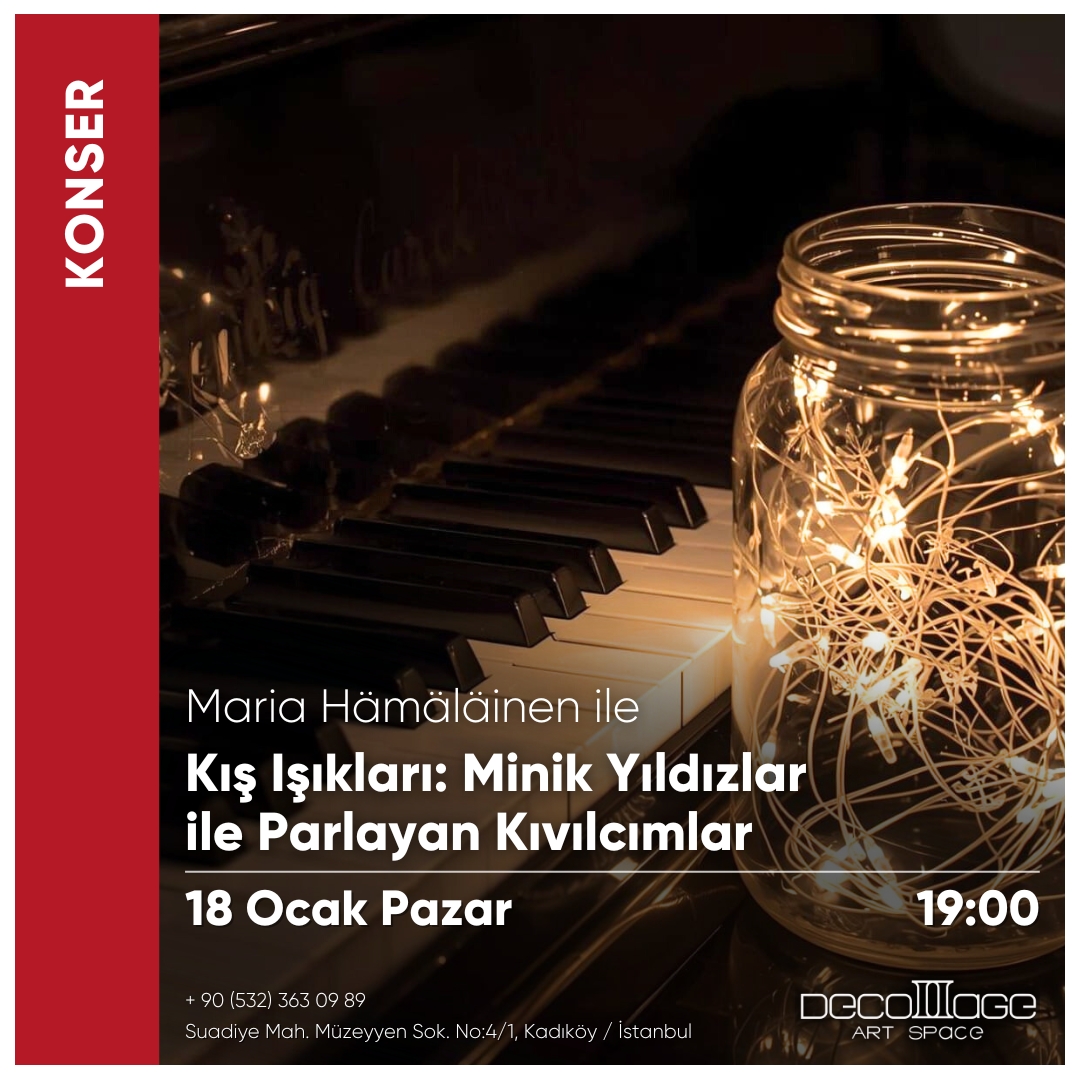 Maria Hämäläinen Sermet'in öğrencilerinin çalacağı bu konserde; piyano atölyemizin öğrencileri ve konservatuar öğrencileri bir arada piyano performanslarını sergileyecek.