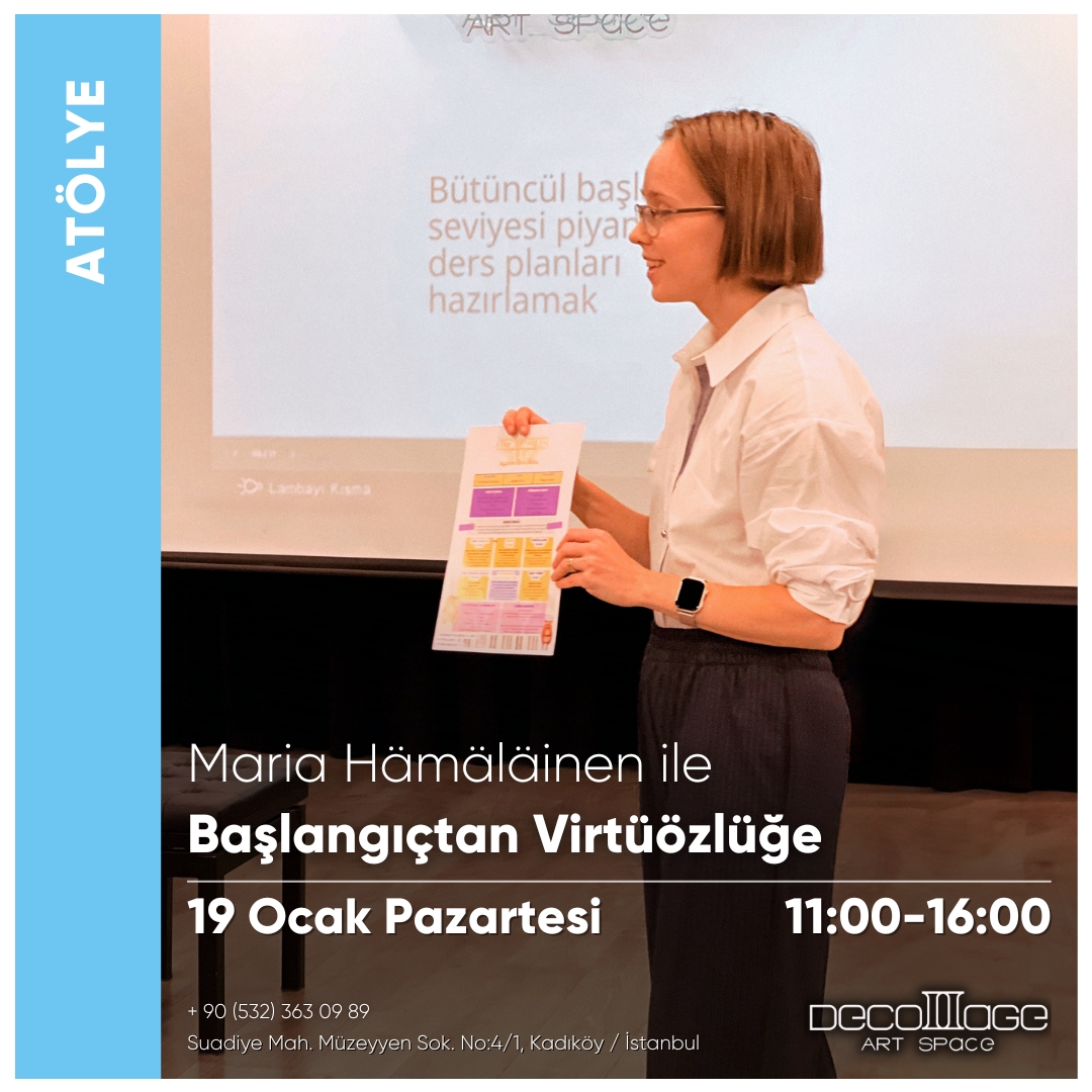 Piyano pedagojisiyle ilgili merak ettiğiniz tüm sorular, piyanist-pedagog Maria Hämäläinen Sermet ile gerçekleşecek bir sonraki eğitmen eğitiminde yanıtlanacak, tartışılacak ve uygulamalı olarak çalışılacak.